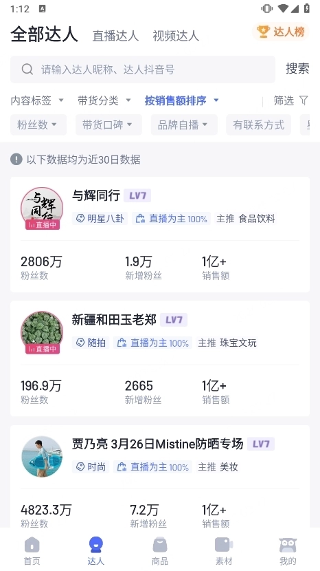 会对达人的历史数据展开全面分析,助力用户清楚掌握他们的带货能力或影响力。