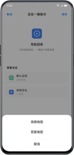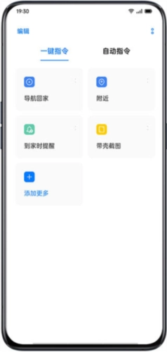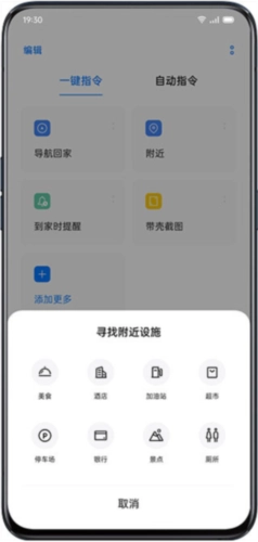 打开小布指令后,你能够设置「导航回家」「附近」「到家时提醒」「带壳截图」等各类一键指令。