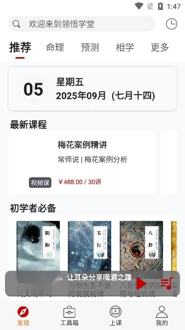 拥有海量的精品课程,涵盖从风水入门的八卦基础认知到高阶的紫微斗数排盘实战,从八字预测的干支关系解读到占卜的六爻起卦技巧。