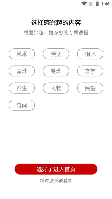 还能够根据用户的学习进度,为其推送奇门遁甲、大六壬、姓名学、测字学、面相学等相关知识内容。