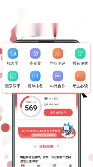 页面按照“查政策-查数据-做模拟-问学长”的逻辑进行分区,核心功能配备醒目图标,家长即便没有专业知识也能协助完成查询。
