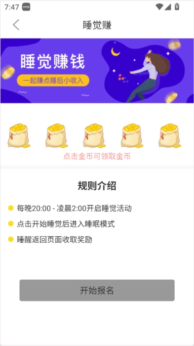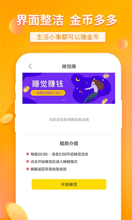 睡觉也能赚,睡醒就能收取奖励。