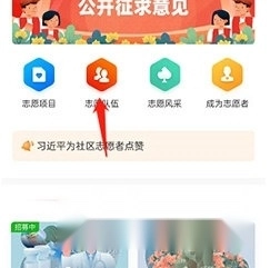 打开软件后,先点击底部的“首页”按钮,接着再点击“志愿队伍”选项。