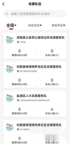 在查看周边的志愿队伍时,用户也能挑选自己想加入的志愿服务队,不过这同样需要留意所在地区哦!