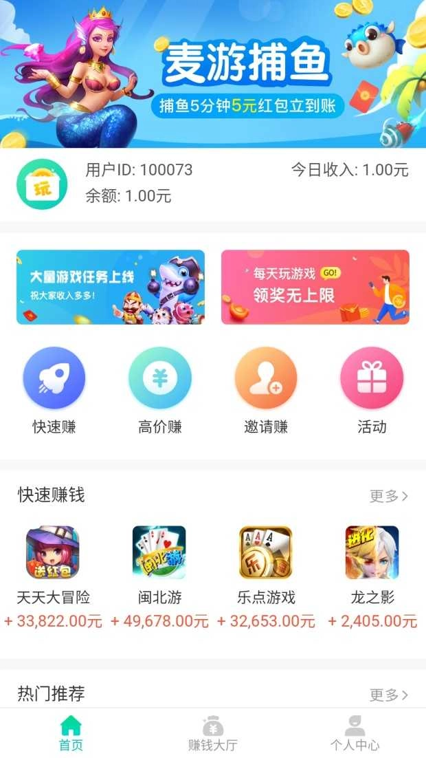 新人注册能领红包奖励,随时随刻都能获取奖励,玩游戏就能赚钱,确实挺不错的。
