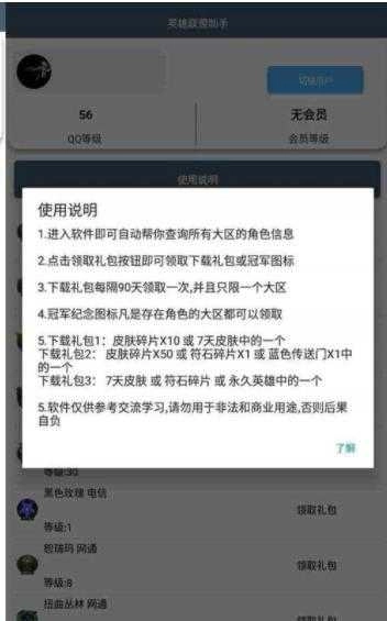 使用英雄联盟助手就能一键查询账号下所有大区的角色信息,还可以一键快速领取皮肤(有机会获得永久皮肤)礼包以及绝版的冠军图标。