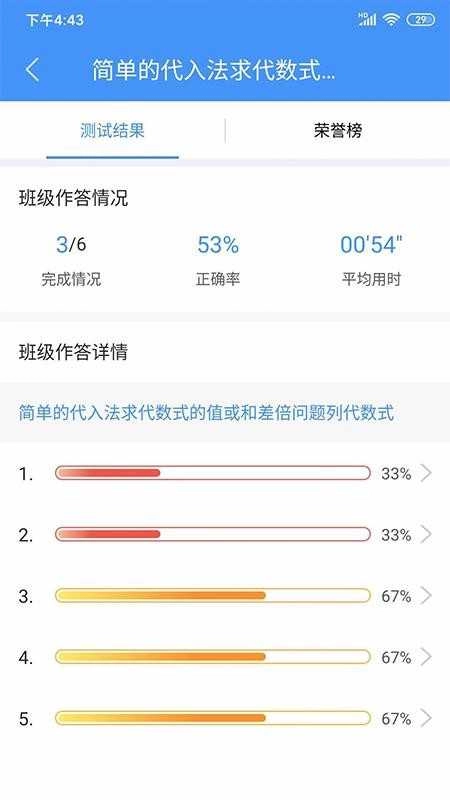 可以及时推送测试结果,方便用户自主查看班级的作答情况,并且能够进行详细浏览。
