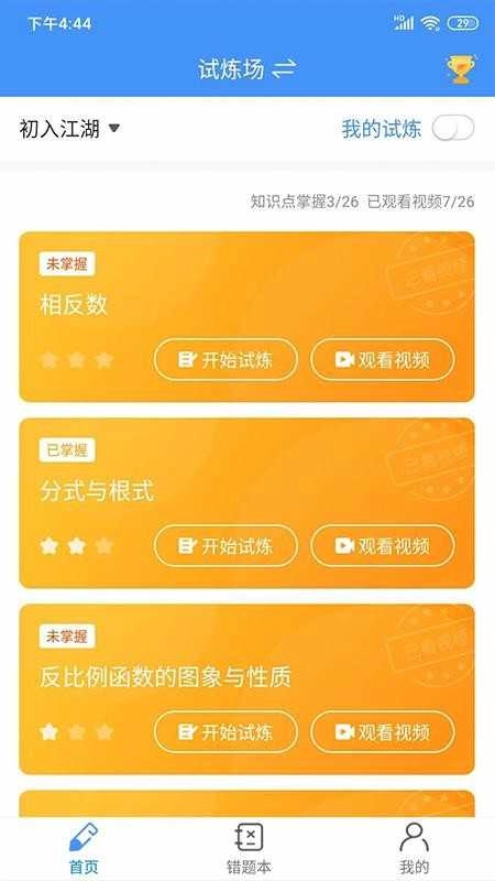 直接进入试炼场,马上查看丰富的数学知识,挑选对应的视频观看