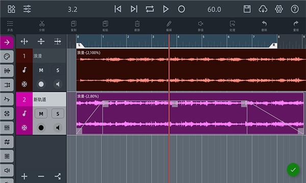在这里能够对音频开展各类操作处理,比如调整大小、波动幅度等参数,从而实现自己理想的音频效果。