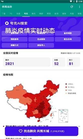 丁香医生、TG、百度、夸克等十几个信息来源,可实时推送国内外最新疫情动态与疫情分布图,帮助用户及时掌握疫情最新情况。