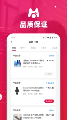 在我的订单页面,您可以查看订单状态,及时支付待付款订单,还能在线确认收货。
