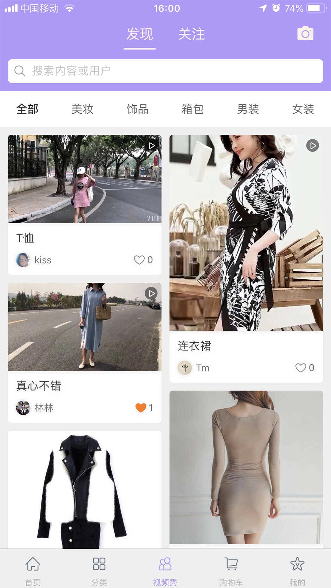 丰富的视频秀商品信息,箱包、服装、美妆等方面的商品都可以直接查看商品视频;