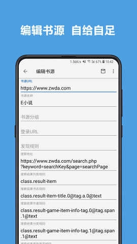 可以自定义书源,自行设置抓取网页数据的规则,这些规则简单易理解,软件内部还提供了规则说明。