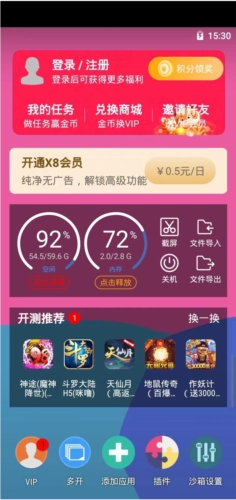 X8沙箱运用的VM技术确保了它具备出色的兼容性,能够在各类手机上流畅运行手机网游以及热门应用。