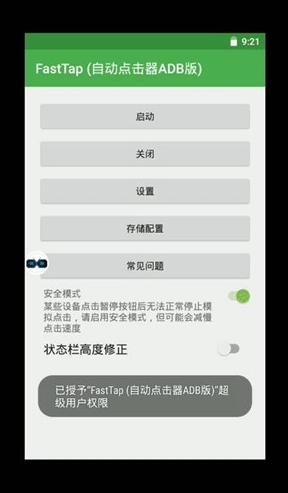 沙箱需要开启ROOT权限,并且要授予FastTap ROOT权限。