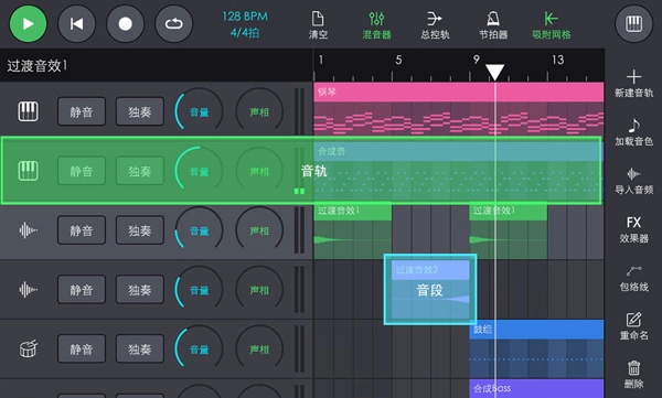 新建音轨和编辑音段