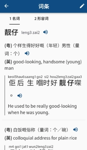 用户能够用粤语、英语或者粤拼/耶鲁拼音来搜索自己感兴趣的字词和词汇。这让查找特定词汇变得十分便捷,不管你粤语水平高还是刚入门。