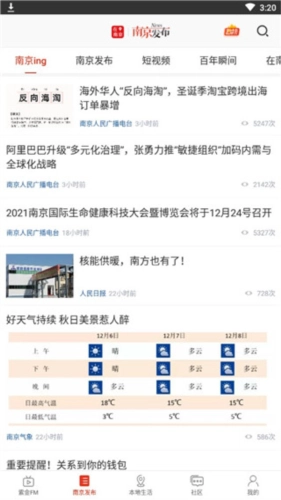 点击南京发布,可以查看南京最新本地新闻