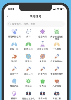选择自己想要就诊的医生、科室、疾病进行挂号等。