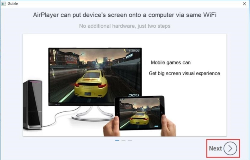 首先,用户得确保要投影的苹果设备与电脑处于同一个WiFi网络环境中,这是顺利投影的前提条件,之后点击“Next”按钮进入下一个步骤。