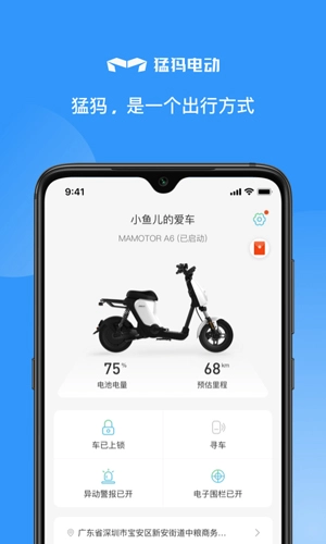 猛犸电动是深圳猛犸电动科技有限公司开发的电动车管理手机应用。借助这款应用,用户能够更便捷地管理自己的电动车。应用实用的剩余电量提醒功能,能及时为用户预警电量状态,保障用户随时安全出行。通过该应用,用户可一站式使用地图导航、智能车锁、车辆损耗监测、电子眼提示等多项电动车管理服务!