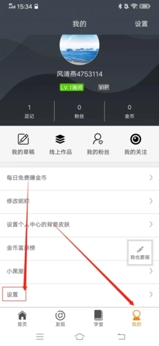 进入后,先点击右下角的“我的”,接着点击页面下方的“设置”。