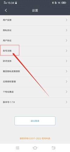 在设置页面的中间位置,我们可以找到“账号注销”选项,点击该选项即可。
