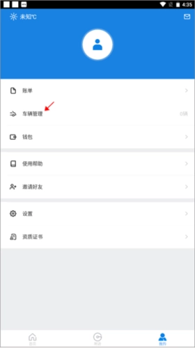 打开软件并登录账号,进入【我的】界面后,点击页面上方的“车辆管理”选项。
