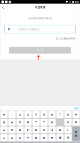 输入车辆的车牌号,并进入下一步。