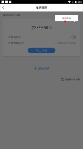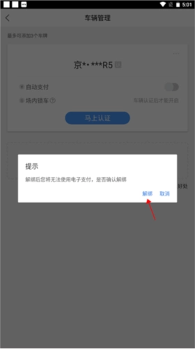 页面出现了“解绑车牌”这几个字,点击它。