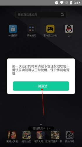 一键锁屏功能需激活后才能正常使用,但不少用户对激活方法并不了解。大家可以按照下方的操作步骤来激活软件,从而开始节省手机电量。