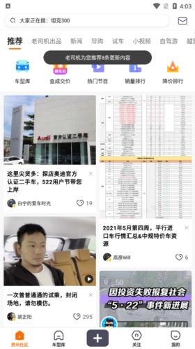 老司机汽车是北京锋巢信息技术有限公司开发的汽车资讯与车友社区类软件,作为专业的汽车资讯平台,用户能在此获取汽车行业的前沿动态。此外,该软件还提供汽车内容服务、报价信息及图片大全,便于用户购车时查询车辆相关资料。平台每日推出原创图文与视频内容,兼具专业性与娱乐性,为用户打造轻松愉悦的车友交流体验。