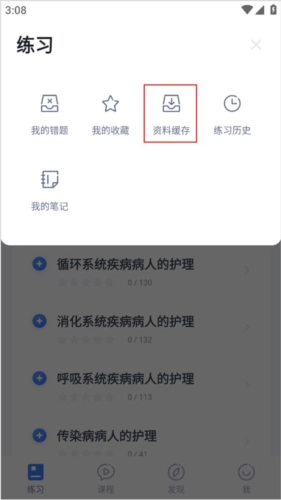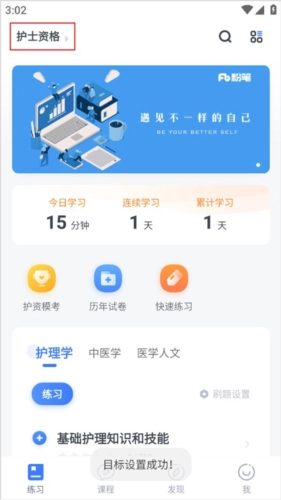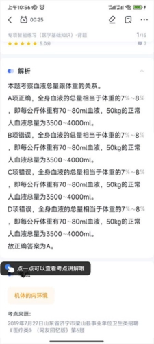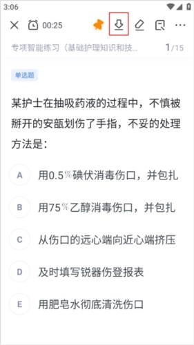 从实际测试的截图里很容易发现,白色的背景底色,代表着“白衣天使”的形象。在练习板块的题库选项中,挑选你想练习的题库,接着进入练习界面,在顶部找到“”图标。